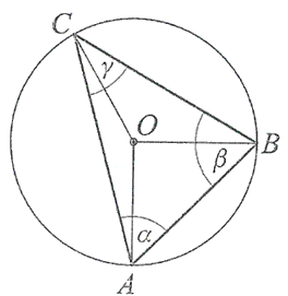 Oblicz miary kątów \(\alpha\), \(\beta\), \(\gamma\) trójkąta \(ABC\).