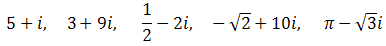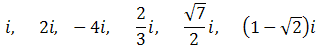 Przykłady liczb zespolonych tylko z częścią urojoną: