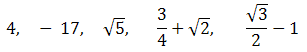 Przykłady liczb zespolonych tylko z częścią rzeczywistą:
