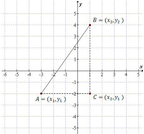 |AB|&=\sqrt{|AC|^2+|BC|^2}\\[6pt] |AB|&=\sqrt{(x_2-x_1)^2+(y_2-y_1)^2} \end{split}\]