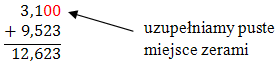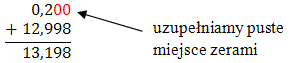 ułamka dopisujemy tyle zer, żeby części ułamkowe były równej długości.
