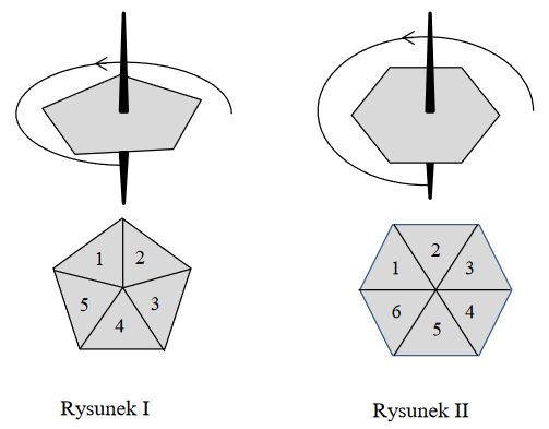 | Uzyskanie nieparzystej liczby na bączku z rysunku I jest tak samo prawdopodobne, jak uzyskanie nieparzystej liczby na bączku z rysunku II. | P | F |