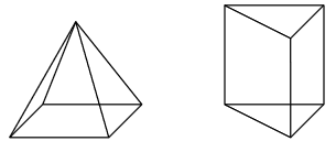 | Całkowite pole powierzchni ostrosłupa jest większe niż całkowite pole powierzchni graniastosłupa. | P | F |