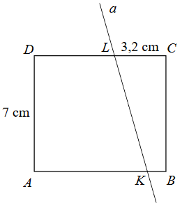 czterokrotnie mniejsze od pola prostokąta \(ABCD\). Oblicz długość odcinka \(KB\). Zapisz