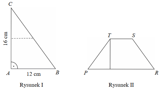 \(ABC\) i trapezu \(PRST\). Zapisz obliczenia