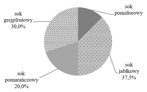 | Sprzedano o \(30\) kartonów więcej soku jabłkowego niż pomidorowego. | P | F |