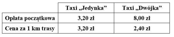 zapłacili tyle samo. Ile kilometrów miała trasa, którą przejechał każdy z nich? Zapisz obliczenia.