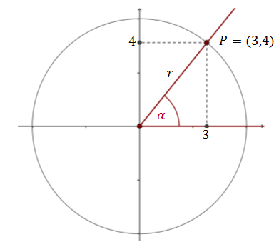 Załóżmy, że na ramieniu kąta \(\alpha \) możemy zaznaczyć punkt \(P=(3,4)\). Jakie