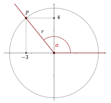 Załóżmy, że na ramieniu kąta \(\alpha \) możemy zaznaczyć punkt \(P=(-3,4)\). Jakie