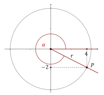 Załóżmy, że na ramieniu kąta \(\alpha \) możemy zaznaczyć punkt \(P=(4,-2)\). Jakie