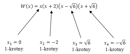 \quad x = -\sqrt{6} \end{split}\] Teraz zapisujemy wielomian w postaci iloczynowej i określamy