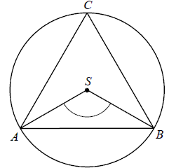 Punkty \(A, B, C\) leżące na okręgu o środku \(S\) są wierzchołkami trójkąta