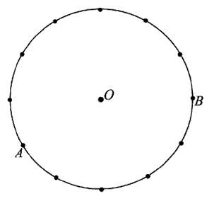 Punkty \(A\) i \(B\) leżą na okręgu o środku \(O\) i dzielą ten okrąg na dwa łuki,