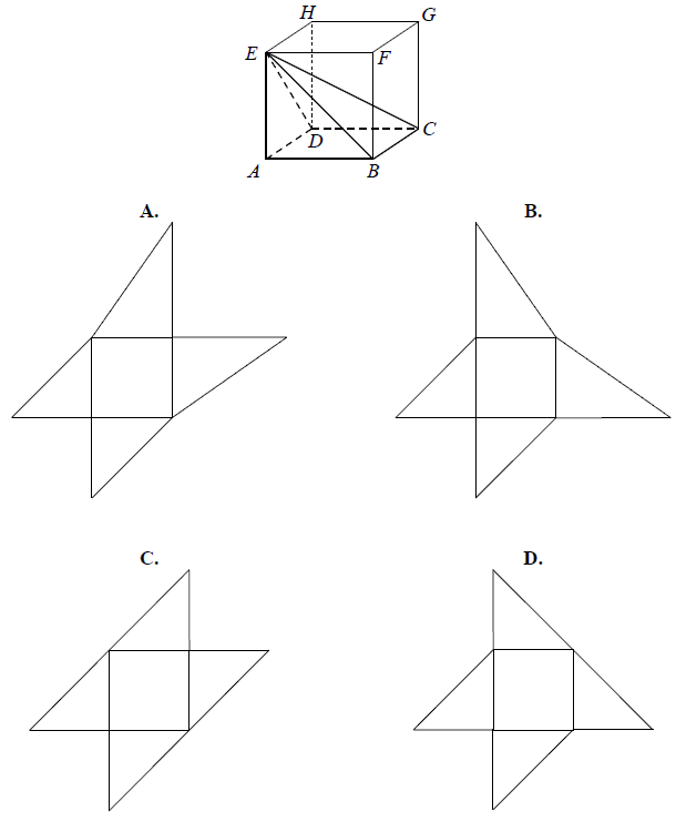 Dany jest sześcian \(ABCDEFGH\). Siatką ostrosłupa czworokątnego \(ABCDE\) jest