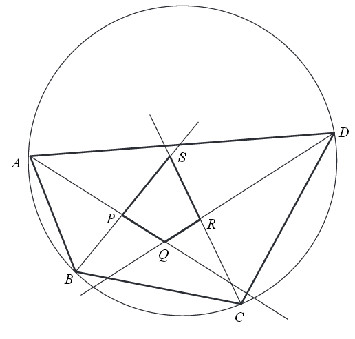 Wykaż, że na czworokącie \(PQRS\) można opisać okrąg.