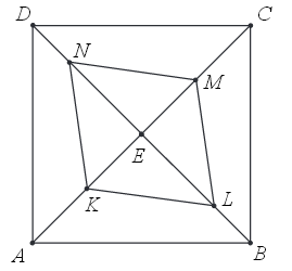 rysunek). Wykaż, że stosunek pola czworokąta \(KLMN\) do pola kwadratu \(ABCD\) jest równy \(1:3\).