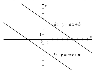 Na rysunku przedstawione są dwie proste równoległe \(k\) i \(l\) o równaniach