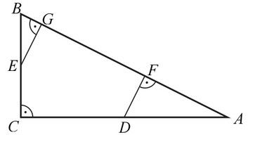 prostokątnego \(ABC\). Punkty \(F\) i \(G\) leżą na przeciwprostokątnej \(AB\) tak, że odcinki