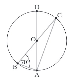 \(70^\circ \), to kąt \(DAC\) ma miarę: