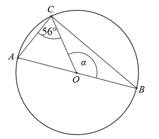 \(AB\) jest średnicą tego okręgu. Zaznaczony na rysunku kąt środkowy \(\alpha \) ma miarę