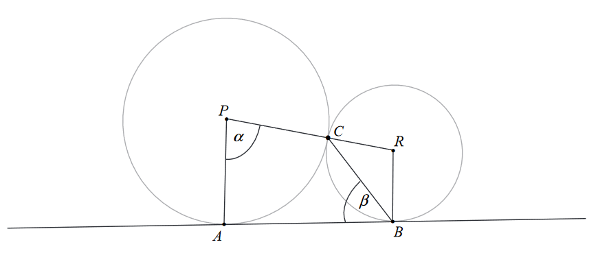 Dane są dwa okręgi o środkach w punktach \(P\) i \(R\), styczne zewnętrznie w
