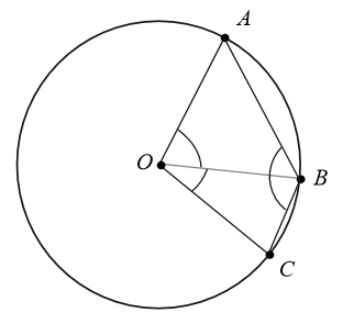 Na okręgu o środku w punkcie \(O\) leżą punkty \(A\), \(B\) i \(C\) (zobacz