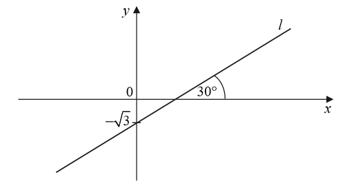 Prosta \(l\) jest nachylona do osi \(Ox\) pod kątem \(30^\circ \) i przecina oś