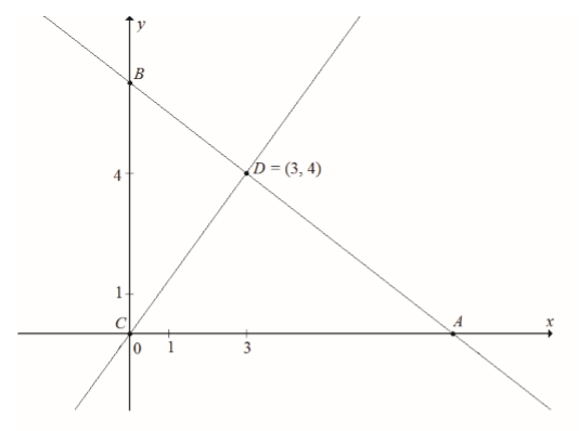 \(A=\left(\frac{25}{3},0\right )\), \(B=\left(0,\frac{25}{4}\right )\),