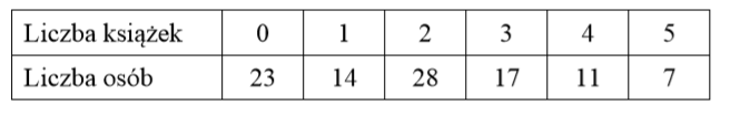 Wśród \(100\) osób przeprowadzono ankietę, w której zadano pytanie o liczbę książek