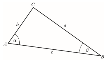 W trójkącie \(ABC\): \(|AB|=c\), \(|AC|=b\), \(|BC|=a\) oraz \(|\sphericalangle