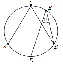 (zobacz rysunek). Odcinek \(CD\) jest średnicą tego okręgu. Kąt wpisany \(DEB\) ma miarę \(\alpha\).