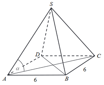 Długość krawędzi podstawy ostrosłupa prawidłowego czworokątnego jest równa \(6\).