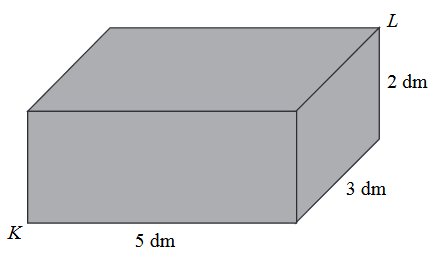 \(KL\) tego prostopadłościanu jest – z dokładnością do \(0,01\) dm – równa