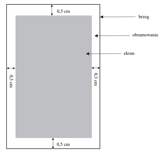 od dłuższych brzegów smartfona były równe \(0{,}3\) cm każda (zobacz rysunek – ekran zaznaczono