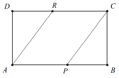 odpowiednio – punkty \(P\) i \(R\), takie, że \(\frac{|AP|}{|PB|}=\frac{|CR|}{|RD|}=\frac{3}{2}\)