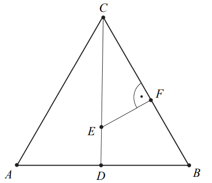 Trójkąt \(ABC\) jest równoboczny. Punkt \(E\) leży na wysokości \(CD\) tego