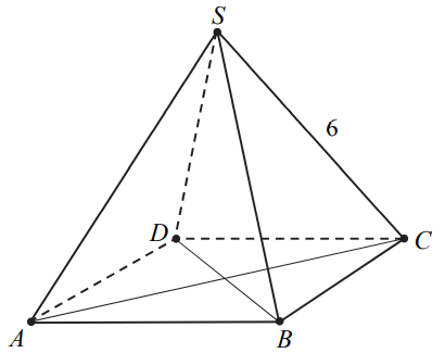 długość \(6\) (zobacz rysunek). Ściana boczna tego ostrosłupa jest nachylona do płaszczyzny podstawy