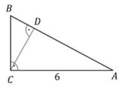Przyprostokątna \(AC\) trójkąta prostokątnego \(ABC\) ma długość \(6\), a wysokość