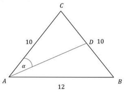 sinus kąta \(\alpha \), jaki środkowa \(AD\) tworzy z ramieniem \(AC\) trójkąta \(ABC\).