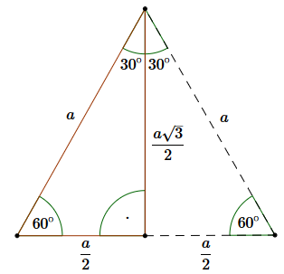 Własności trójkąta \(30^\circ \), \(60^\circ \), \(90^\circ \):