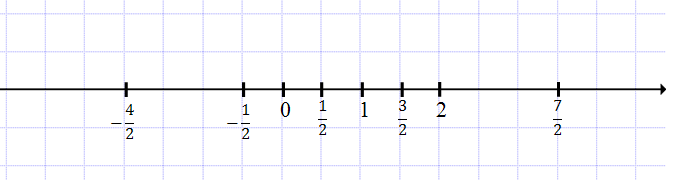 Przykładowo, jeżeli chcemy zaznaczyć na osi ułamki o mianowniku \(2\), to