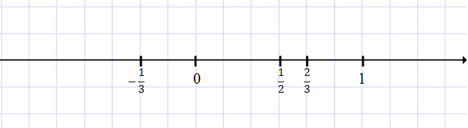 Jeżeli chcemy zaznaczyć na osi ułamki o różnych mianownikach, np.: \(2\) i \(3\), to za