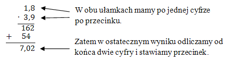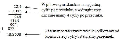 - W otrzymanym wyniku przecinek wstawiamy odliczając tyle cyfr od końca, ile