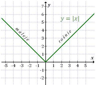 - Funkcja \(f(x) = |x|\) nie jest monotoniczna. Jest malejąca w przedziale \((-\∞,