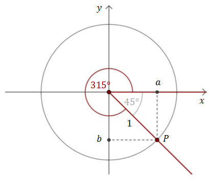 =\frac{b}{1}=b\\[6pt]&\cos 315^\circ =\frac{a}{1}=a\\[6pt]&\operatorname{tg} 315^\circ