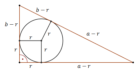 \(a\) i \(b\) wpiszemy okrąg o promieniu \(r\).