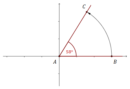\(58^\circ \) uzyskaliśmy poprzez obrót półprostej \(AB\) wokół punktu \(A\) (drogę jaką pokonał