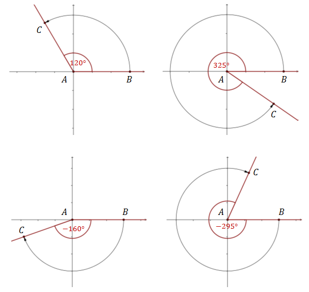 - \(-2000^\circ =160^\circ -6\cdot 360^\circ \)