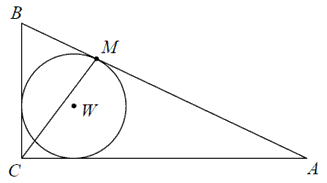 \(ABC\) jest styczny do boku \(AB\) w punkcie \(M\). Oblicz długość odcinka \(CM\).