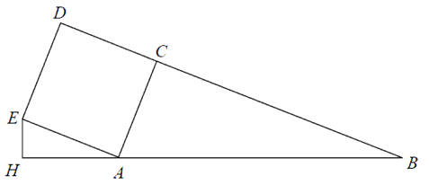 oraz \(|AC| = 5\), \(|BC| = 12\) zbudowano kwadrat \(ACDE\) (patrz rysunek). Punkt \(H\) leży na